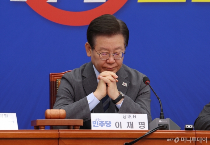 [서울=뉴시스] 고승민 기자 = 이재명 더불어민주당 대표가 21일 서울 여의도 국회에서 열린 최고위원회의에서 최고위원들의 발언 동안 생각에 잠겨 있다. 2024.06.21. kkssmm99@newsis.com /사진=고승민 |