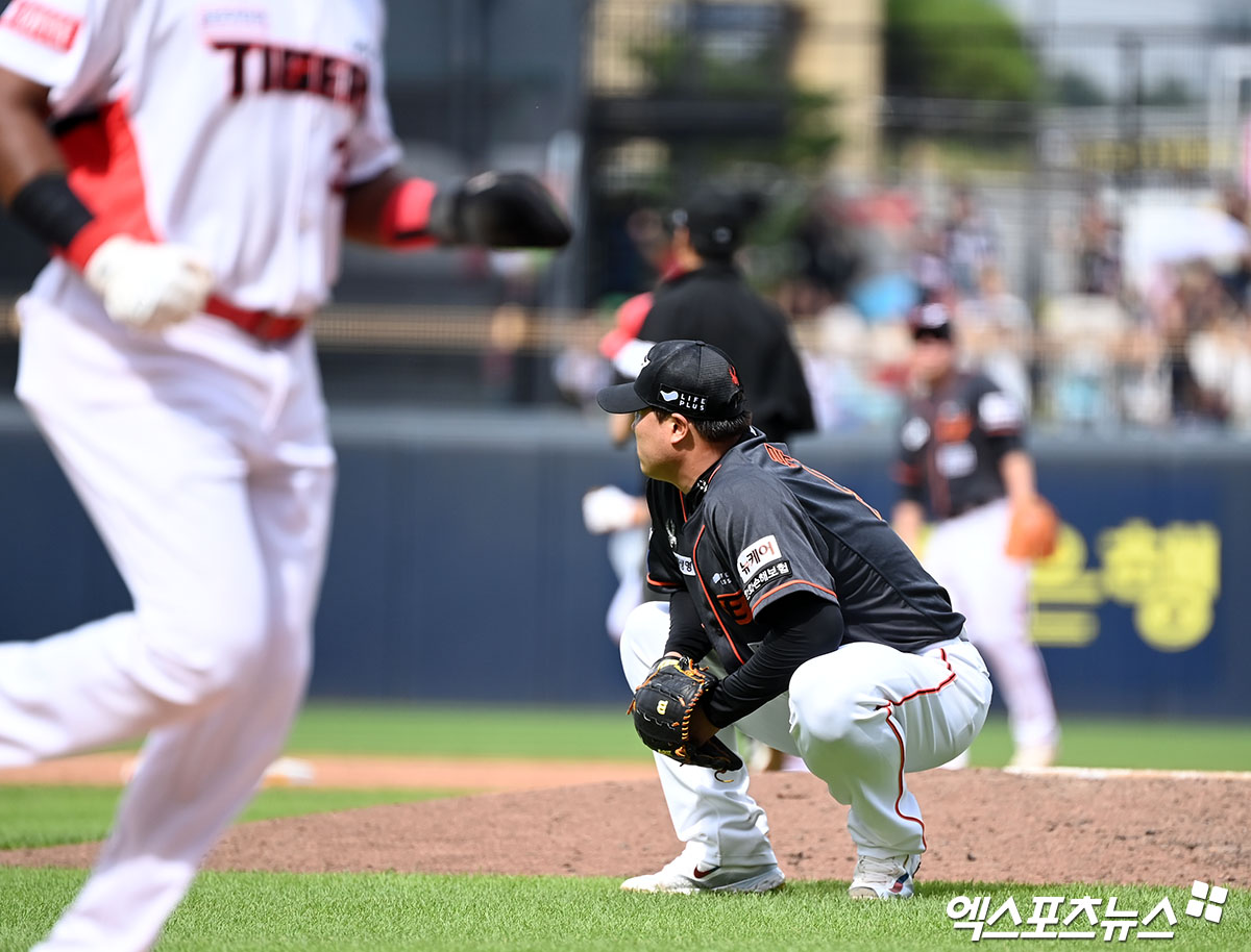 그런데 4회말부터 흔들리기 시작했다. 선두 김도영에게 던진 체인지업이 통타를 당하며 담장을 넘어갔고, 김도영이 20홈런-20도루 기록을 완성하는 홈런을 내주게 됐다. 이어 최형우에게도 볼 세 개를 내주며 불리한 볼카운트로 승부한 류현진은 결국 홈런을 또 맞고 연속 타자 홈런을 허용했다.