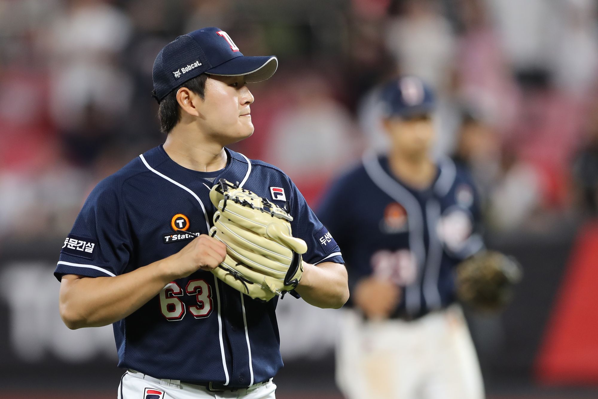김택연은 배정대까지 삼구삼진을 잡아냈다. 초구, 2구 슬라이더로 카운트를 잡은 뒤 150km짜리 직구로 배정대의 헛스윙을 유도했다. 이어황재균까지 공 3개로 삼진으로 돌려세우고 이닝을 끝냈다. 세 타자 모두 결정구는 직구였다.