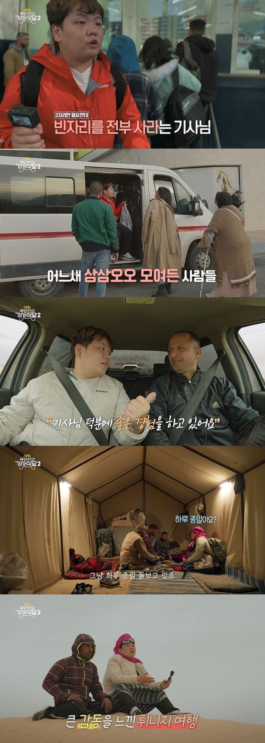 다른 루아지를 타기 위해 티켓을 새로 샀지만 이번에는 기사들끼리 논쟁이 벌어지며 곽준빈의 분노 게이지는 더욱 상승했다. 어렵게 루아지에 탑승한 곽준빈은 “루아지보다는 다른 걸 타시는 게 좋을 것 같다”고 했고 예상 시간보다 한참이 지나서야 튀니스를 떠날 수 있었다. 정류장에서 혼란스러운 상황이 있었지만 친절한 승객들과 기사 덕분에 곽준빈은 다시금 인류애를 충전했다.