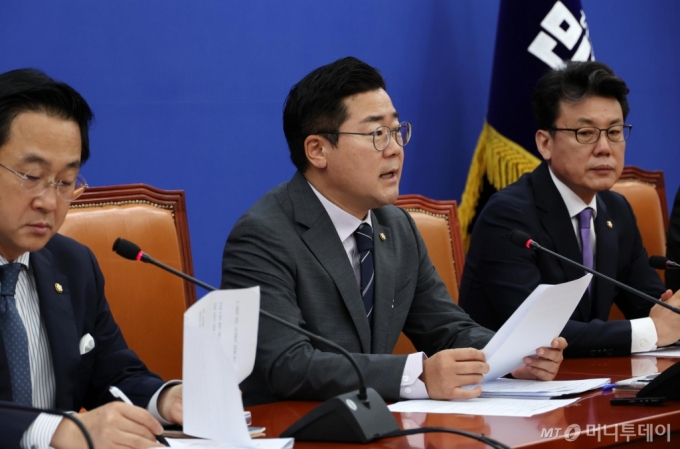 박찬대(가운데) 더불어민주당 당 대표 직무대행 겸 원내대표가 1일 오전 서울 여의도 국회에서 열린 정책조정회의에서 발언하고 있다. 2024.08.01. /사진=뉴시스 |
