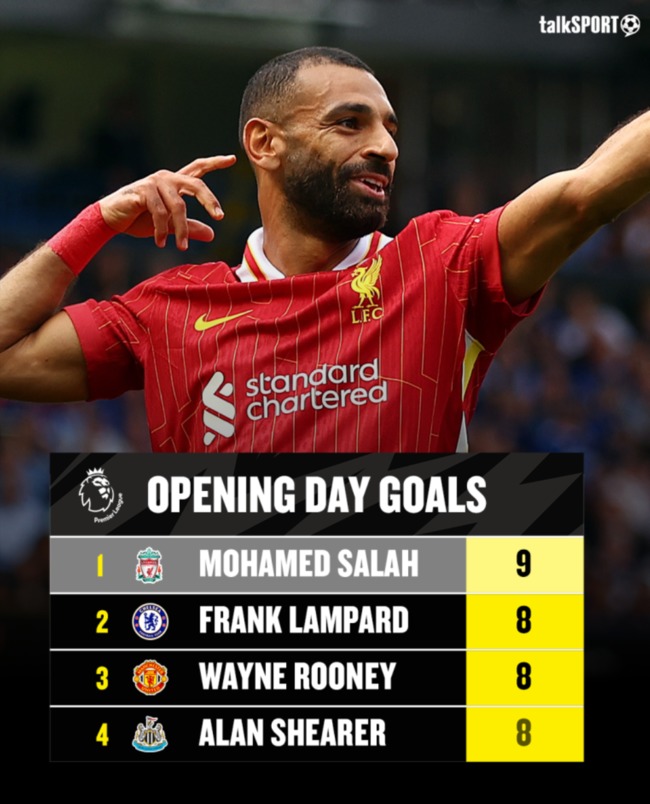 총 8골을 넣었던 살라는 입스위치전에서 개막전 9번째 득점을 추가했다.
