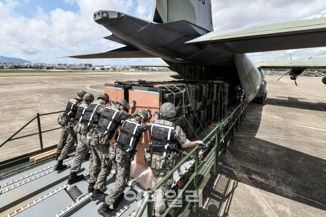 공군미사일방어사령부는 22일 대구기지 활주로에서 패트리어트와 천궁 유도탄을 수송기를 통해 타기지로 운송하는 공중수송절차 숙달 훈련을 실시했다고 밝혔다.