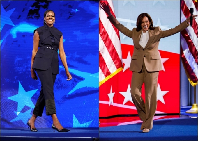앞서 미 언론은 전당대회 첫날 깜짝 등장한 민주당 대선후보 카멀라 해리스 부통령의 의상에도 집중하며 전통을 깬 파격이라고 평가했다. 해리스 부통령은 지난 19일 황갈색 정장을 입고 전당대회 무대에 올랐다.