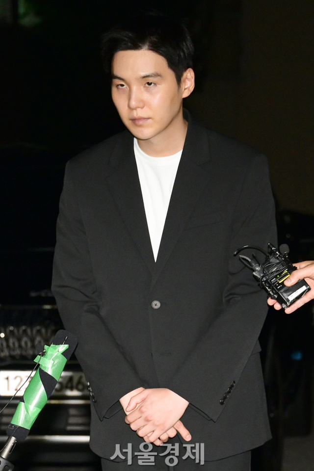 그룹 방탄소년단(BTS) 슈가가 경찰서에 출석해 조사를 받고 나왔다.