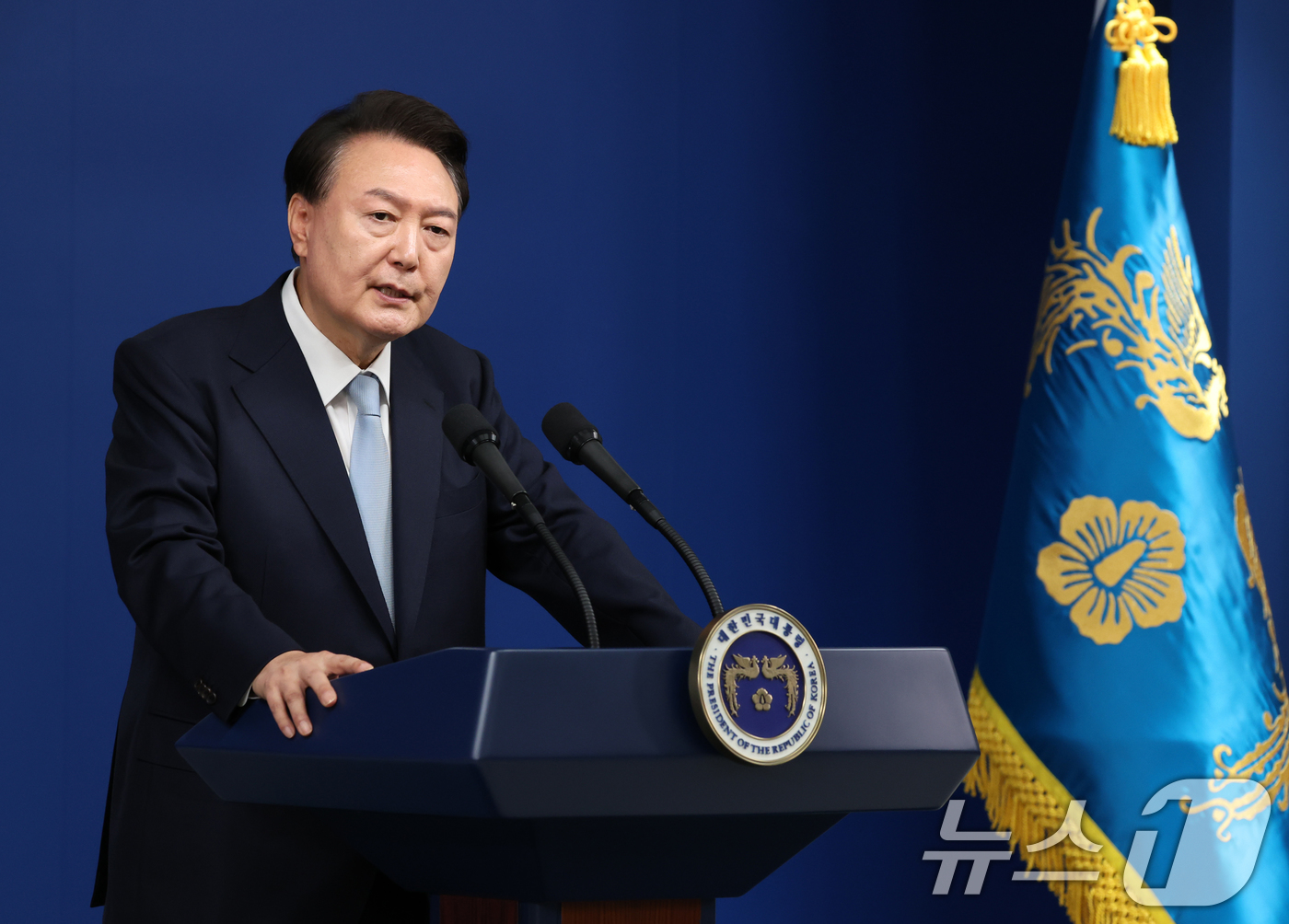(서울=뉴스1) 송원영 기자 = 윤석열 대통령이 29일 서울 용산 대통령실청사 브리핑룸에서 열린 국정브리핑 및 기자회견에서 취재진의 질문에 답하고 있다. 2024.8.29/뉴스1