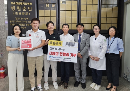 기부단체 대표는 "각 기관 구성원이 자발적으로 헌혈 행사를 하고 뜻을 모아 화순전남대병원에 헌혈증을 기부했다"며 "참여 기관을 확대해 이웃 사랑을 꾸준히 실천하겠다"고 밝혔다.
