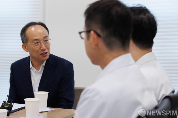 [서울=뉴스핌] 윤창빈 기자 = 추경호 국민의힘 원내대표가 12일 오전 추석명절 대비 응급진료체계 현장방문차 서울 동대문구 린 여성병원을 방문해 의료진들과 간담회를 하고 있다. 2024.09.12 pangbin@newspim.com
