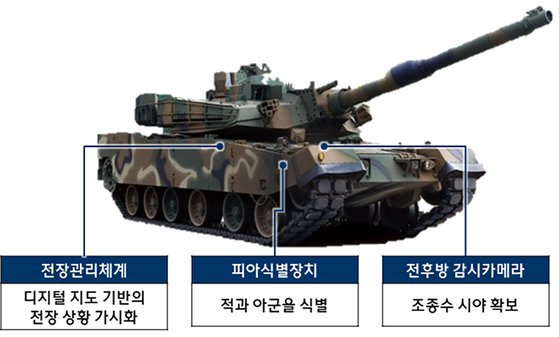 새롭게 장착된 피아식별장치는 적과 아군을 명확히 구분해 아군 간 오인 사격을 방지하며, 전·후방 감시카메라는 승무원의 외부 노출 없이 전·후방 장애물을 확인할 수 있어 밀폐기동 시 조종수 시야 확보에 유리하며, 안전사고로 인한 비전투손실을 예방할 수 있다.