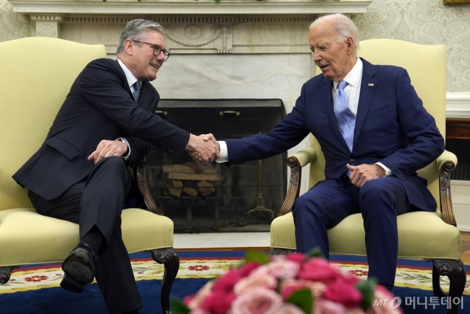 조 바이든(오른쪽) 미국 대통령이 지난 7월 10일(현지시각) 백악관 집무실에서 키어 스타머 영국 총리와 회담하고 있다. 2024.07.11. /사진=민경찬 |