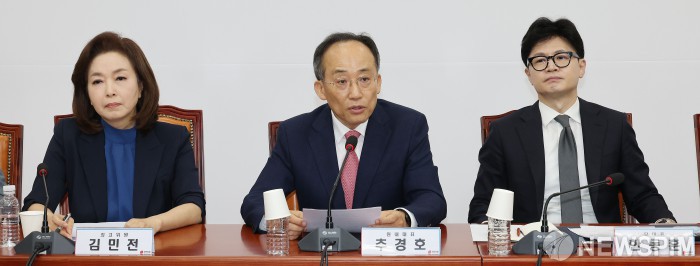 [서울=뉴스핌] 이형석 기자 = 추경호 국민의힘 원내대표가 19일 오전 서울 여의도 국회에서 열린 최고위원회의에서 모두 발언을 하고 있다. 2024.09.19 leehs@newspim.com