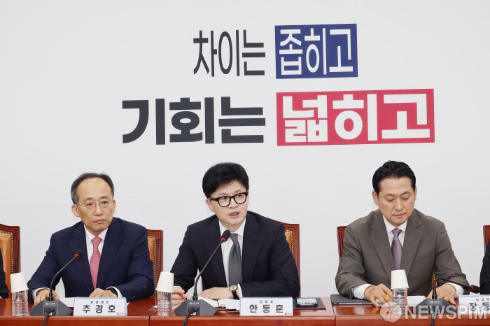 [서울=뉴스핌] 이형석 기자 = 한동훈 국민의힘 대표가 19일 오전 서울 여의도 국회에서 열린 최고위원회의에서 모두 발언을 하고 있다. 2024.09.19 leehs@newspim.com