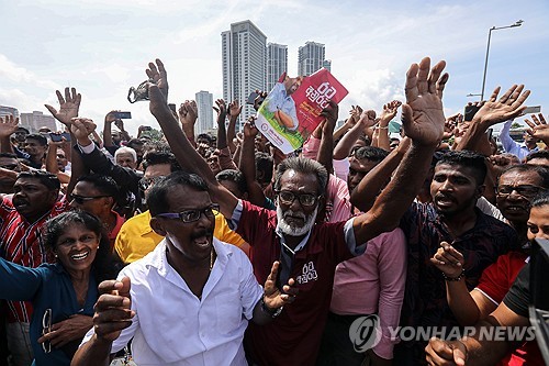 환호하는 디사나야케 신임 대통령 지지자들 |