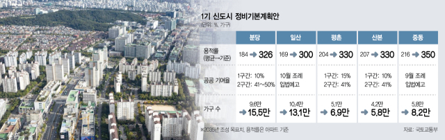 이로써 1기 신도시는 기존 39만 2000가구에서 오는 2035년까지 총 53만 7000가구 규모의 도시로 탈바꿈한다. 지역별로는 분당 신도시의 규모가 9만 6000가구에서 15만 5000가구로 가장 많이 늘어난다. 이어 일산(6만 1000가구→8만 8000가구), 중동(4만 가구→6만 4000가구), 평촌(3만 2000가구→5만 가구), 산본(3만 6000가구→5만 가구) 순이다. 총인구는 67만 3000명에서 95만 2000명으로 27만 9000명 늘어날 전망이다.