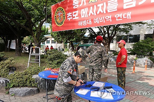 해병대 예비역 연대는 이날 오전 포항시외버스터미널에서 해병대 전역자들을 대상으로 동기 채상병에게 추모 메시지를 남길 수 있는 부스를 마련했다.