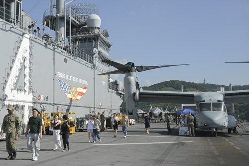 행사에서는 대형수송함 마라도함(LPH)과 부산작전기지에 기항 중인 미 해군 강습상륙함 복서함(LHD)을 공개해 한미 해군의 굳건한 연합방위 태세를 보여줬다.