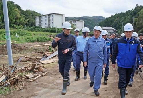 와지마시 재해 현장 시찰하는 이시바(앞줄 가운데) 일본 총리. |