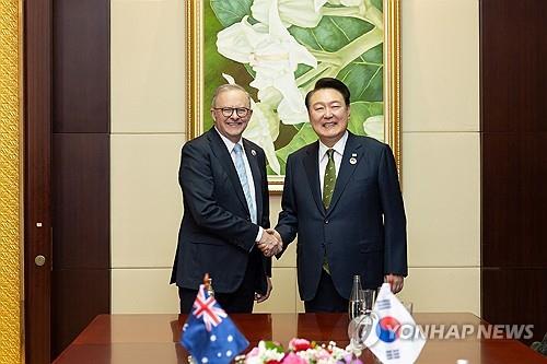 앨버니지 총리는 "인도·태평양 지역의 평화와 번영을 위한 윤 대통령의 리더십을 평가한다"며 "인·태지역의 대표적인 우방국인 한국과 호주가 긴밀히 협력하면서 유사입장국간의 특별한 연대를 계속 강화해 나가자"고 말했다.