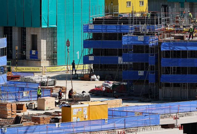 지난달 24일 서울 시내 한 아파트 건설 현장에서 근로자들이 작업을 하고 있다. 뉴시스 |