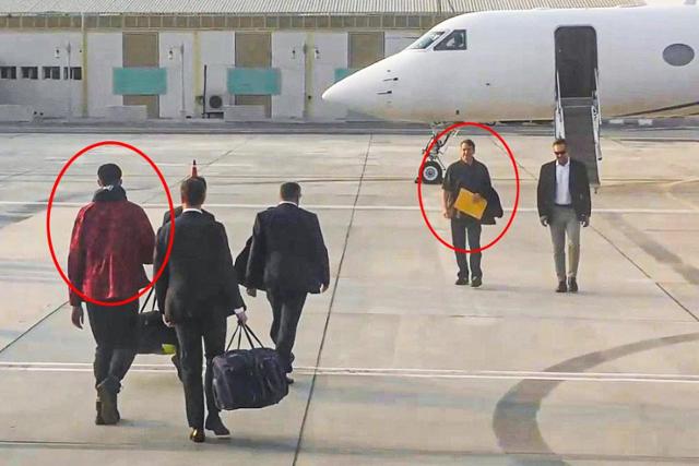 2022년 12월 8일 아랍에미리트(UAE) 아부다비 국제공항에서 러시아에 수감됐던 미국 여자 프로농구 선수 브리트니 그라이너(왼쪽 원 안)와 미국 교도소에서 복역하던 러시아 무기거래상 빅토르 바우트(오른쪽 원 안)가 맞교환되고 있다. 아부다비=타스통신 연합뉴스 |