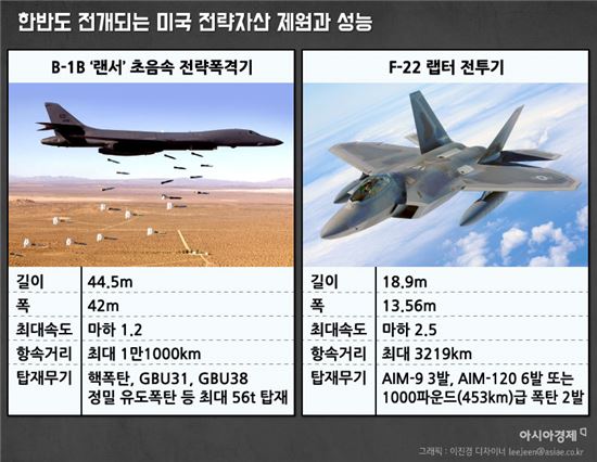 한반도에 전개되는 미국 전략자산 제원과 성능. 그래픽 = 이진경 디자이너 |