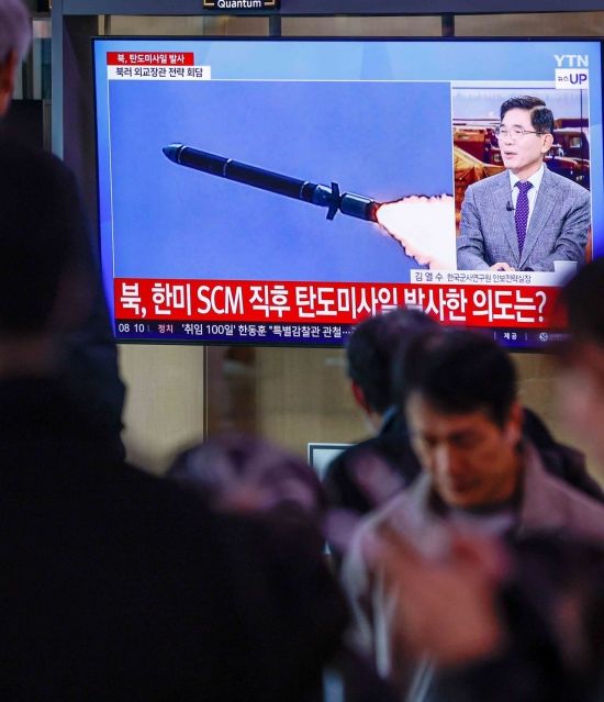 북한이 동해상으로 대륙간탄도미사일(ICBM)로 추정되는 탄도미사일 1발을 발사한 31일 서울역 대합실에서 시민들이 북한 미사일 발사 관련 뉴스를 시청하고 있다. 강진형 기자 |