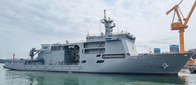 방위사업청은 1일 경남 거제 한화오션 조선소에서 잠수함구조함(ASR)-II 강화도함을 해군에 인도했다.