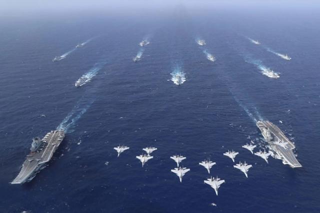 홍콩 명보는 1일 "중국 해군이 최근 남중국해역에서 랴오닝함과 산둥함 등 두 항공모함 전단을 동원해 훈련을 실시했다"고 보도했다. 두 개의 항공모함 전단은 10월 훈련 기간 동안 황해(서해)와 동중국해, 남중국해 등을 기동했으며, 다양한 전술 목표와 시나리오를 적용한 종합적 훈련을 했다고 매체는 전했다. 장샤오강 중국 국방부 대변인은 관영 CCTV에 "이번 훈련에는 실전 시나리오가 반영됐다"며 "(두 항공모함 전력이) 응집된 전투 능력 향상을 목표로 했다"고 설명했다.