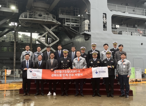 (서울=연합뉴스) 김철선 기자 = 방위사업청은 악천후 속에도 구조작전을 수행할 수 있는 잠수함구조함 '강화도함'을 1일 해군에 인도했다고 밝혔다.