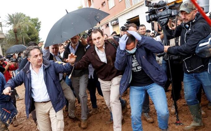 성난 주민들은 피해 지역을 걷는 펠리페 6세와 산체스 총리 일행을 에워싸고 진흙과 오물을 집어 던졌으며, "살인자들", "수치", "꺼지라"고 욕설했다.