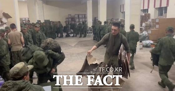 사진은 우크라이나 군 전략소통·정보보안센터(SPRAVDI)가 북한군으로 추정되는 군인들이 줄을 서서 러시아 보급품을 받고 있다고 공개한 영상. /SPRAVDI 페이스북 |