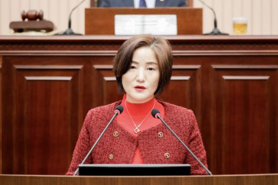 이경희 구리시의원은 25일 제342회 제2차 정례회 제4차 본회의에서 5분 자유발언을 통해 아동학대 예방 및 피해아동 보호를 위한 정책을 제안하고 있다. 구리시의회 제공 |