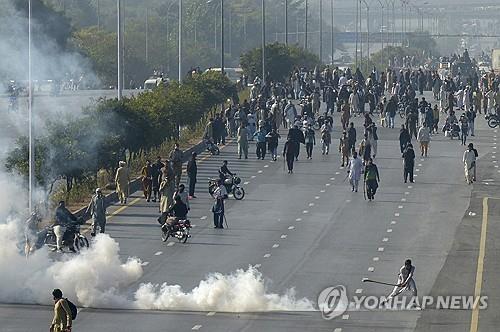 26일(현지시간) 로이터·AFP 통신 등에 따르면 이날 오전 이슬라마바드 서부에서 수도 중심 정부청사 구역으로 들어오려는 시위대와 이를 막아서려던 준군사조직 부대가 충돌했다.