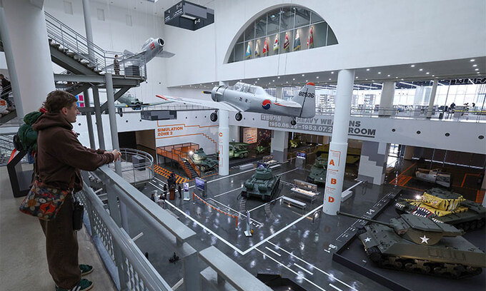 26일 서울 용산구 전쟁기념관 개관 30주년을 맞이해 새롭게 단장한 기념관 내 대형무기실에서 관람객들이 6·25전쟁 당시 유엔군과 공산군이 사용했던 무기들을 살펴보고 있다. 대형무기실에선 관람객들의 체감을 강화하기 위한 국내 최초 M4A3E8 셔먼 전차와 LVT-3C 상륙장갑차 3D 영상이 새롭게 선보였다.