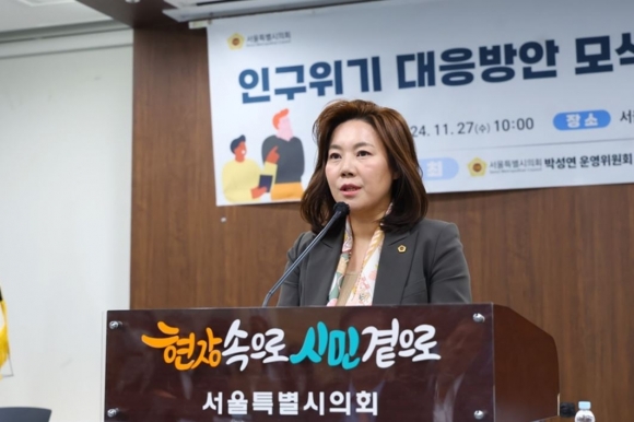 서울시의회 박성연 의원(국민의힘·광진2)은 지난 27일 서울시의회 제2대회의실에서 채널A와 함께 ‘인구위기 대응방안 모색을 위한 토론회’를 개최, 인구구조 변화로 인한 사회적·경제적 문제와 정책적 해법을 논의했다.