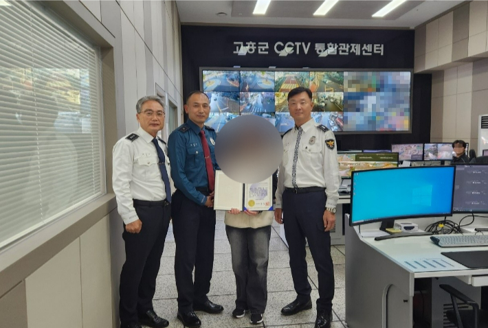 고흥경찰서가 음주운전자를 붙잡는 데 기여한 고흥군 통합관제센터 관제요원에게 감사장을 수여했다.