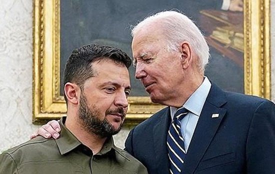 볼로디미르 젤렌스키 우크라이나 대통령 격려하는 조 바이든 미국 대통령. 로이터=연합뉴스 |