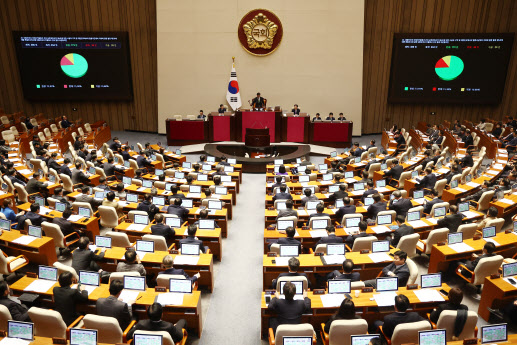 28일 오후 서울 여의도 국회에서 열린 제418회국회(정기회) 제13차 본회의에서 대한민국과 아메리카합중국 간의 상호방위조약 제4조에 의한 시설과 구역 및 대한민국에서의 합중국군대의 지위에 관한 협정 제5조에 대한 특별조치에 관한 대한민국과 미합중국 간의 협정 비준동의안이 재석 234인, 찬성 173인, 반대 36인, 기권 25인으로 통과되고 있다(사진=뉴스1) |