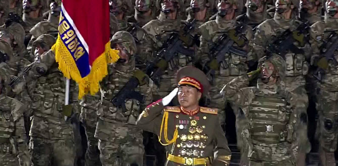 김정은 국무위원장의 측근으로 러시아에 파병된 북한군부대를 총괄하고 있는 것으로 알려진 김영복 조선인민군 총참모부 부참모장이 지난 노동당창건 75주년 기념 열병식(2020년 10월 10일)에서 인민군 특수작전군 사령관으로서 열병대오를 이끌고 있는 모습.[조선중앙TV 화면] |