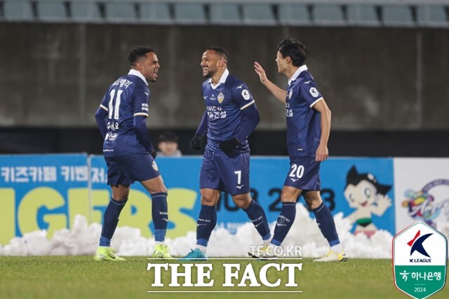 [더팩트 | 박순규 기자] 거침없는 충남 아산의 도전 정신이 1부 승격의 가능성을 높였다. 전반 15분 만에 2골을 터뜨리며 1부리그 수성에 나선 대구FC를 혼란에 빠뜨렸다.