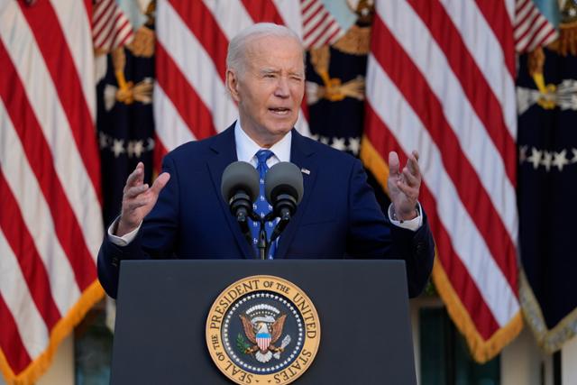 조 바이든 미국 대통령이 26일 워싱턴 백악관 로즈가든에서 연설하고 있다. 워싱턴=AP 뉴시스 |