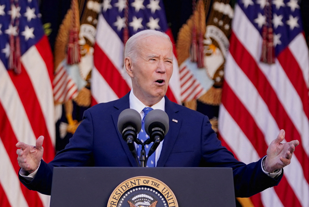 조 바이든 미국 대통령이 26일(현지시간) 미국 워싱턴D.C. 백악관 로즈가든에서 연설을 하고 있다. 워싱턴D.C./로이터연합뉴스 |