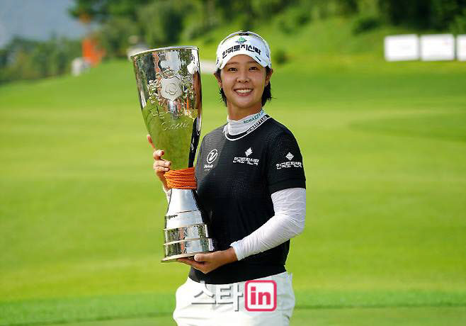 올해 한화 클래식에서 우승해 트로피를 들고 있는 박지영(사진=이데일리DB) |