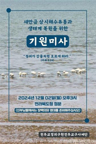 (전주=연합뉴스) 정경재 기자 = 천주교정의구현전주교구사제단(이하 사제단)은 '새만금 해수 유통·생태복원' 미사를 이달부터 전북특별자치도청 앞에서 연다고 1일 밝혔다.