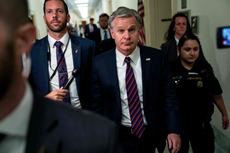 지난 7월 24일 미국 워싱턴DC 하원에서 크리스토퍼 레이 미국 연방수사국(FBI) 국장(가운데)이 같은달 발생한 도널드 트럼프 미국 대통령 당선인 암살 미수 사건과 관련한 청문회 증언을 위해 이동하고 있다.AFP연합뉴스