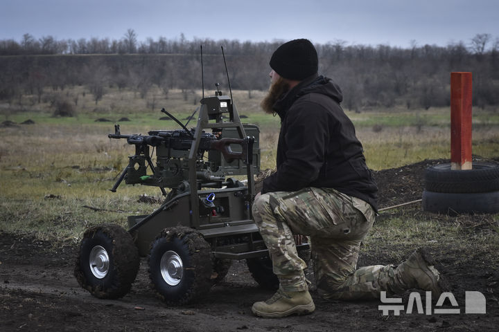 [자포리자=AP/뉴시스] 미국 조 바이든 행정부가 러시아와 전쟁 중인 우크라이나에 1조원대 규모 군사 지원을 추가로 준비 중인 것으로 전해진다. 사진은 지난달 29일(현지시각) 우크라이나 자포리자에서 제65 기계화여단 소속 군인이 '흐놈2(Gnom 2) 지상 드론의 작동법을 설명하고 있는 모습. 2024.11.30. |