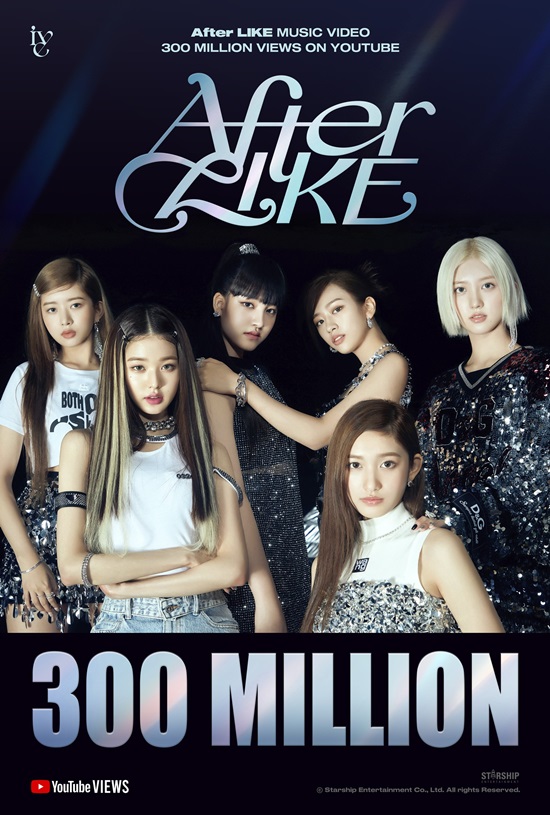3일 소속사 스타쉽엔터테인먼트에 따르면 아이브(안유진·가을·레이·장원영·리즈·이서)가 지난 2022년 8월 22일 발표한 아이브의 세 번째 싱글 앨범 타이틀곡 '애프터 라이크(After LIKE)' 뮤직비디오가 유튜브 조회수 3억 뷰(12월 2일 기준)를 돌파했다.