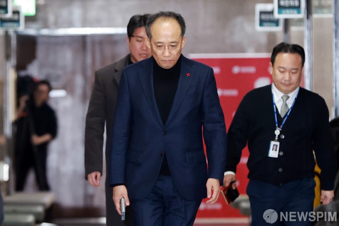 [서울=뉴스핌] 이형석 기자 = 추경호 국민의힘 원내대표가 4일 오전 서울 여의도 국회에서 열린 최고위원회의에 참석하고 있다. 2024.12.04 leehs@newspim.com