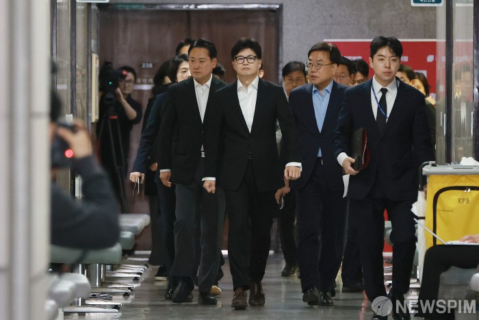 [서울=뉴스핌] 이형석 기자 = 한동훈 국민의힘 대표가 4일 오전 서울 여의도 국회에서 열린 최고위원회의에 참석하고 있다. 2024.12.04 leehs@newspim.com |