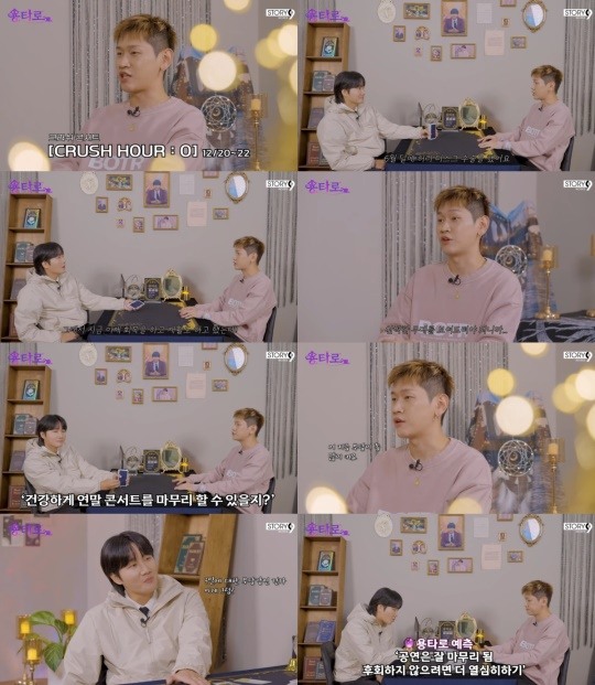 이용진은 “한번에 1만 관객을 채울 수 있는 뮤지션도 몇 명 되지 않는데, 그 공연장에서 3일을 하니 부담이 될 수밖에 없을 것 같다”며 크러쉬가 뽑은 타로 카드를 읽기 시작했다. 이용진은 “잘 마무리 될 걸로 나오고, 후회하지 않으려면 열심히 해야 할 것 같다”며 콘서트 때마다 비가 오던 크러쉬에게 “공연 날 눈이 내릴 것 같다”고 예측했다.